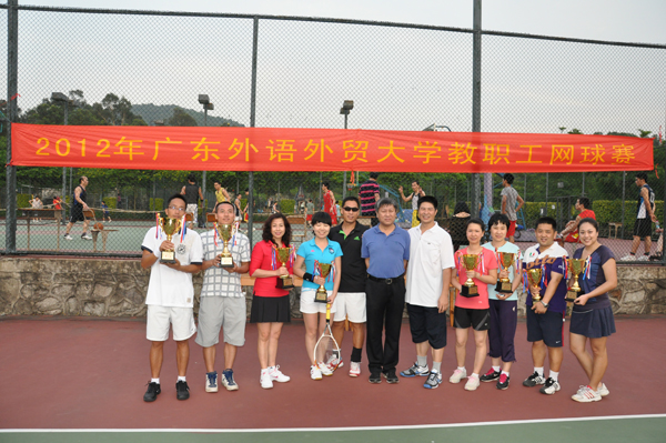 本网讯 为响应教育部“阳光体育”工程,倡导全民健身,根据我校工会工作安排,4月21日我校顺利举办2012年广东外语外贸大学教工网球比赛。全校工会各部门分会包括校长仲伟合、校党委副书记卢景辉、副校长刘建达等在内的约70名教职工网球爱好者组成的十支代表队参加了比赛。