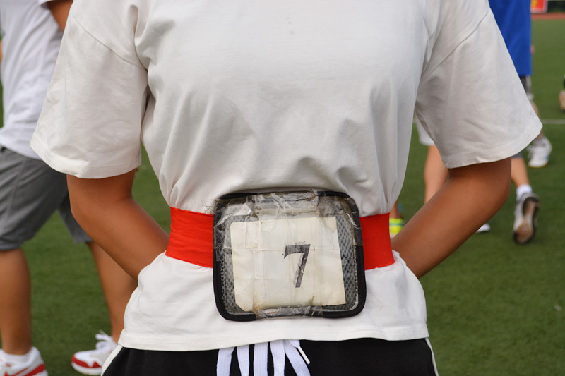 | 准备活动中,“1到20号的宝宝们去寄红腰带!其他宝宝等一下穿蓝色的背心。” |