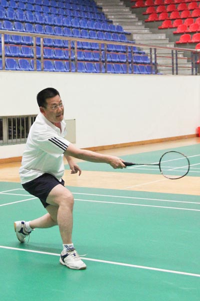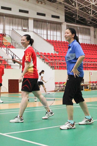 仲伟合亲自上场,与我校前羽球队队员组成搭档对阵两位奥运冠军。球场上,杨维和张洁雯这两位前奥运冠军配合完美,应对轻松。而我校这边亦不甘示弱,两人皆反应迅速,扣杀有力,配合默契。场上气氛紧张却又不失欢乐,不时传来阵阵笑声,精彩的对阵引来不少师生的围观。刘建达以及个别队员也分别与张洁雯进行了练习赛,张洁雯对队员们进行了相应的指导。