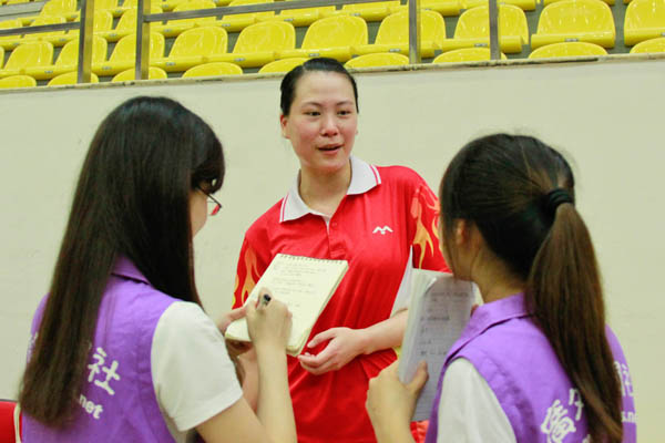 在接受记者采访时,张洁雯说到,仲伟合作为非专业运动员,其精湛球技令她颇为意外。而谈到我校学子的表现时,她则赞道她们“敢抢”、“果断”,网前球均处理得十分出色。但明显不足的是体力,因此必须加强训练。当问及对初学者的建议时,她则说道:“初学者要想提高必须多练,而在缺乏专业人士的指导的情况下也可通过多看球赛,观察别人的打法以提高自身水平。”而杨维也建议打羽毛球要多多练习,熟能生巧,练多了技术就会渐渐形成。