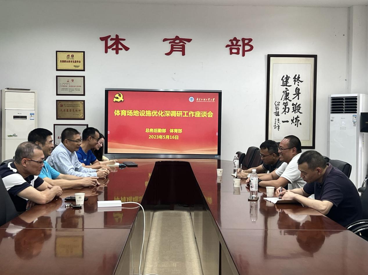 实地调研后,在体育部会议室召开体育场地设施优化深调研工作座谈会,总务后勤部结合体育场馆的现状及体育部反映的情况,对我校体育场馆部分场地设施的维修、体育馆淋浴更衣室改造、室外球场安装洗手台等问题进行了梳理,并提出初步的解决方案。同时表示体育部与总务后勤部将继续加强沟通和交流,力求更好地为学校师生办实事解难事,打造高品质的运动场馆,促进师生体质健康发展,营造浓厚的体育文化氛围。